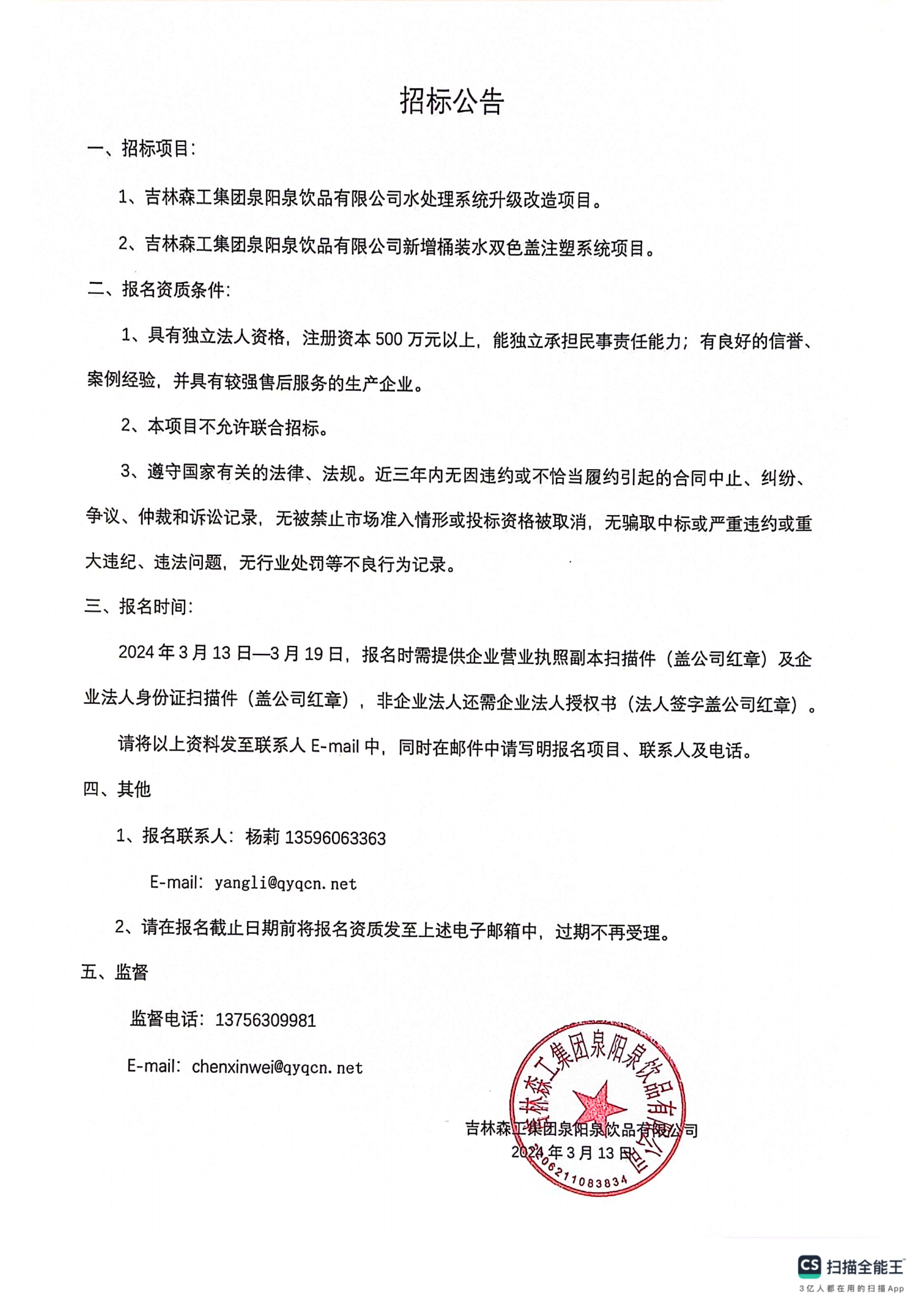 吉林森工集團泉陽泉飲品有限公司